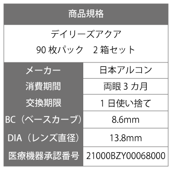 【処方箋不要】 【送料無料】 デイリーズアクア 90枚パック 2箱セット ( コンタクトレンズ コンタクト 1日使い捨て ワンデー 1day 日本アルコン デイリーズ dailies 90枚 90枚 バリューパック )